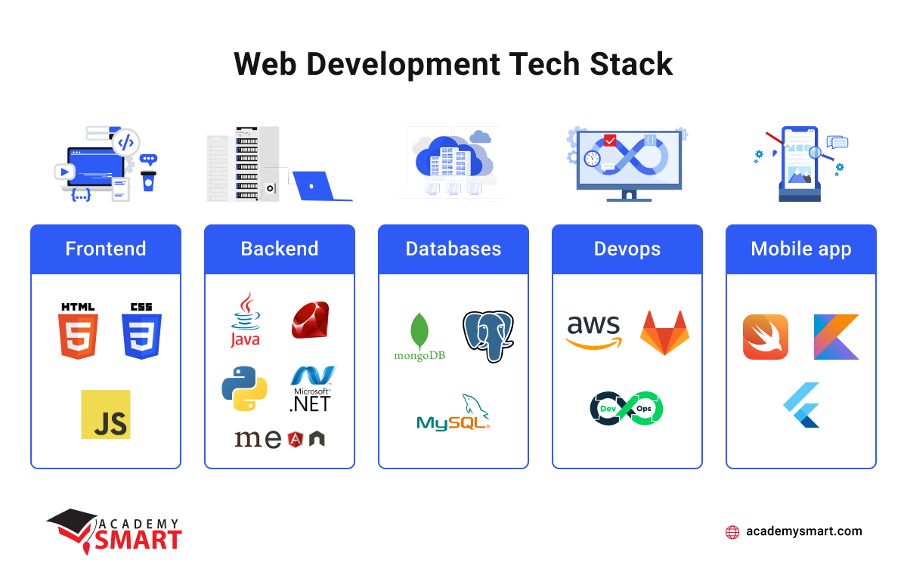 First, you should know that software tech stacks are divided into two parts: frontend and backend.